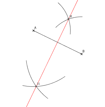 Pour construire le milieu d'un segment, on construit la médiatrice du segment. Elle coupe le segment en son milieu. Rappel : pour construire la médiatrice d'un segment à l'aide du compas, on construit avec celui-ci deux point à égale distances des extrémités du segment comme sur cette figure.