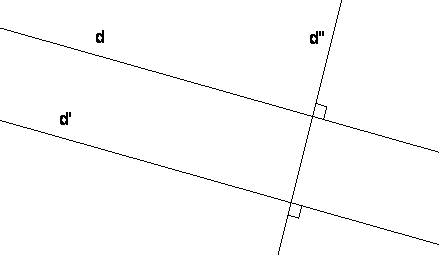 droites d et d’ sont toutes deux perpendiculaires à d’’. Donc d et d’ sont parallèles. |