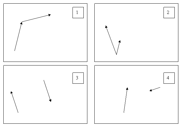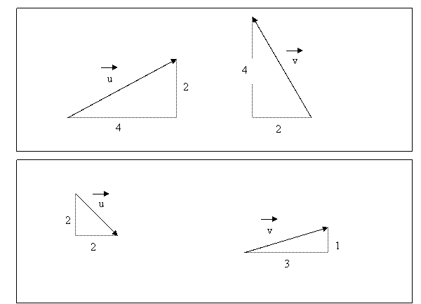 Exercice 5 : Dans chaque cas, tracer un vecteur qui soit la somme des deux vecteurs proposés ; comment s’appelle le vecteur obtenu en 3 ?